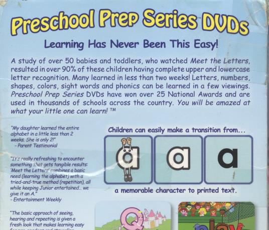 It is quite uplifting to find a resource that delivers noticeable results: 'Meet the Letters' merges a fundamental necessity (learning the alphabet) with a proven technique (repetition), all while keeping children engaged... we rate it an A. The fundamental method of viewing, listening, and repeating is presented in an innovative way that simplifies learning for pre-readers and those who are just starting to read. This is an essential addition for any young child's collection.