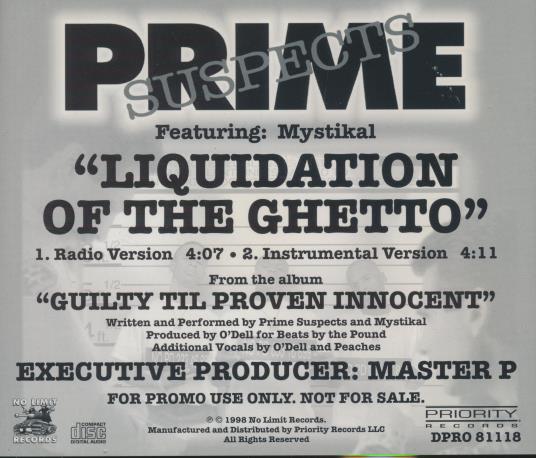 Prime Suspects: Liquidation Of The Ghetto Promo w/ Back Artwork