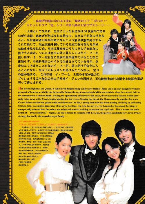 Her Royal Highness, the Queen, is still unwed despite being in her early thirties. Since she is an only daughter with no prospect of hearing a child in the foreseeable future, the royal succession is left in uncertainty when the current heir to the throne meets a sudden death. Seizing the opportunity afforded by this crisis, the conservative faction, which presently holds sway at the Court, begins plotting for the crown. Sensing the threat, the Queen secretly searches for a new Crown Prince outside the palace walls and discovers Lee Hu, a young man who has been making his living by delivering Chinese food, in complete ignorance of his royal heritage. Hu, who has never even dreamed of becoming the King, is unexpectedly ushered into the palace and subjected to strict training to become the royal heir. This is where the main action of Prince Hours S begins. Lee Hu is forced to compete with Lee Jun, the perfect candidate for Crown Prince strongly backed by the extended royal family.