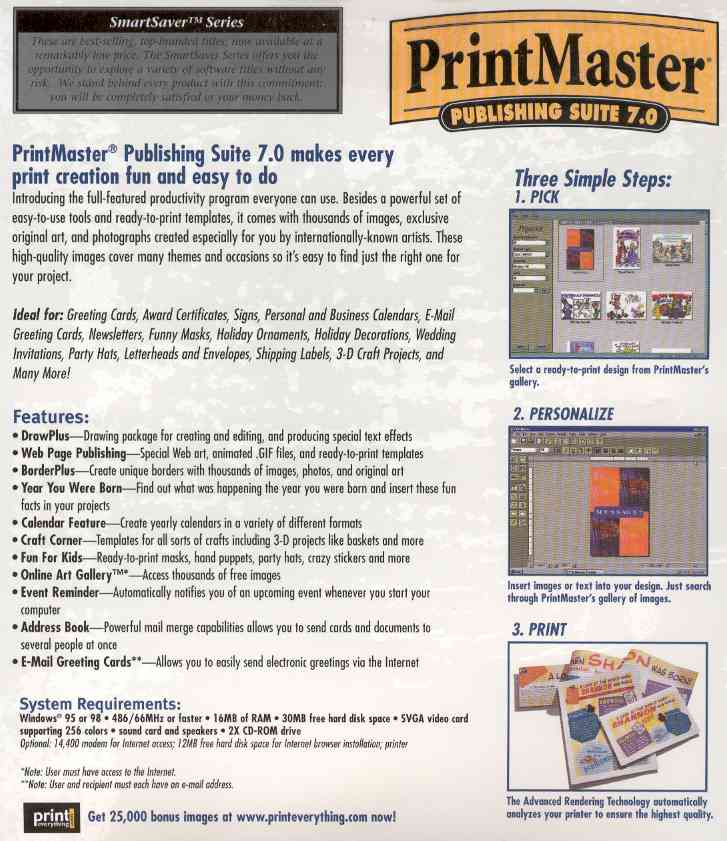 PrintMaster Publishing Suite 7.0 makes every print creation fun and easy to do.
