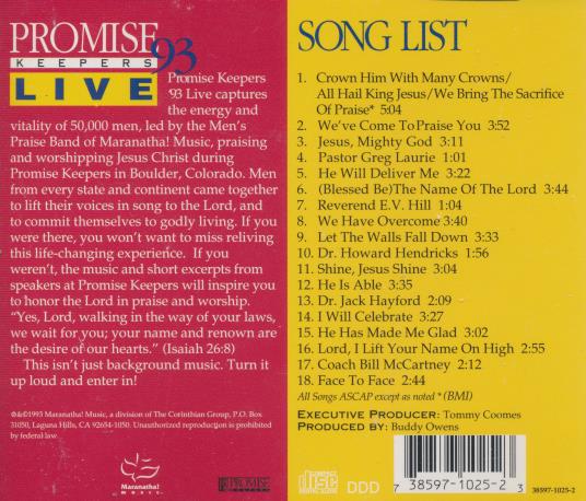 Promise Keepers: Live '93 MUSIC AUDIO CD Christian worship praise 1993 Maranatha