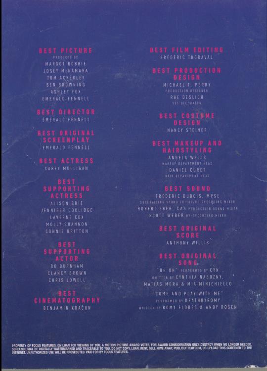 Promising Young Woman FYC BLU-RAY VIDEO MOVIE Carey Mulligan dark comedy 2020