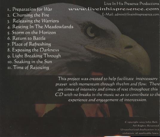 Prophetic Atmospheres produces instrumental, ambient music designed to support times of prayer and reflection. This release, produced and instrumented by John Belt, focuses on creating atmospheric soundscapes intended to facilitate intercessory prayer and engagement. The music moves between moments of intensity and times of rest, with continuous flows to aid sustained prayer. The collection blends ambient textures with rhythmic momentum to create a contemplative, worshipful listening experience.