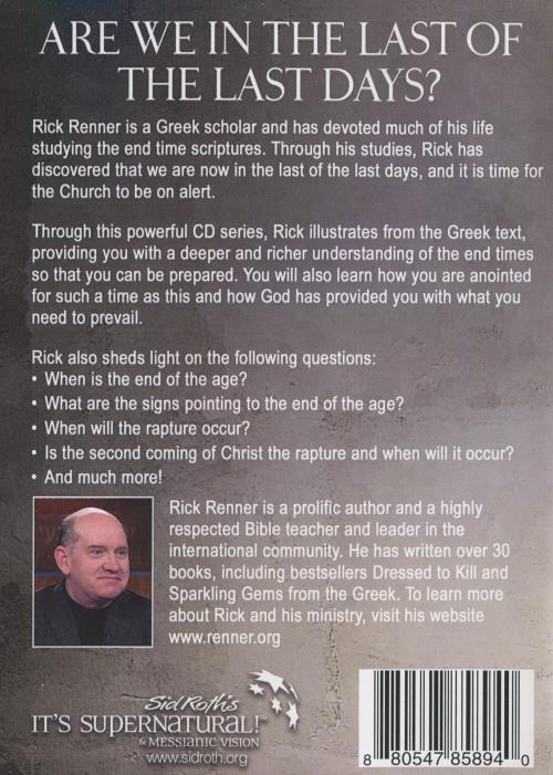 ARE WE IN THE LAST OF THE LAST DAYS? Rick Renner is a Greek scholar and has devoted much of his life studying the end time scriptures. Through his studies, Rick has discovered that we are now in the last of the last days, and it is time for the Church to be on alert. Through this powerful CD series, Rick illustrates from the Greek text, providing you with a deeper and richer understanding of the end times so that you can be prepared. You will also learn how you are anointed for such a time as this and how God has provided you with what you need to prevail.