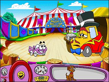 In this Junior Adventure for kids 3-8, the circus has arrived in Apple Valley and owner Mr. Sweeney has asked Putt-Putt to get his 5 circus acts ready. There's Ivan the Semi-Strong Van, who needs his special energy drink mixed up; there's the leaky pool that Francine the high diver needs fixed; there's Eunice the Unicycle who needs her umbrella for the high wire act. There's also other folks around, such as Phillipe the Flea, Bette Bandwagon, Katie Cannonball and the Flying Porkowskis to name a few. All can use some help. And there's plenty of locations to explore and things to click on.