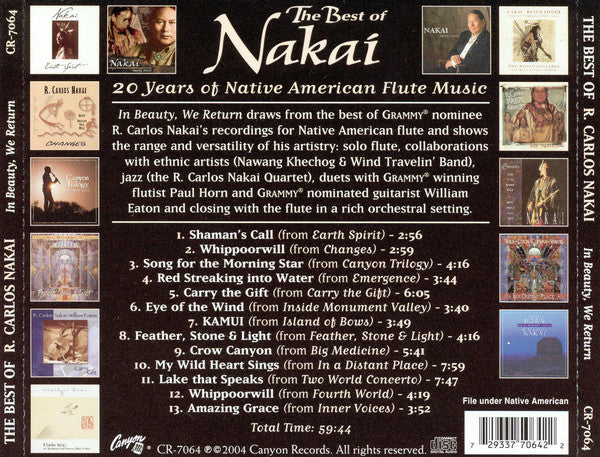 R. Carlos Nakai The Best Of Nakai: In Beauty We Return MUSIC AUDIO CD Aboriginal