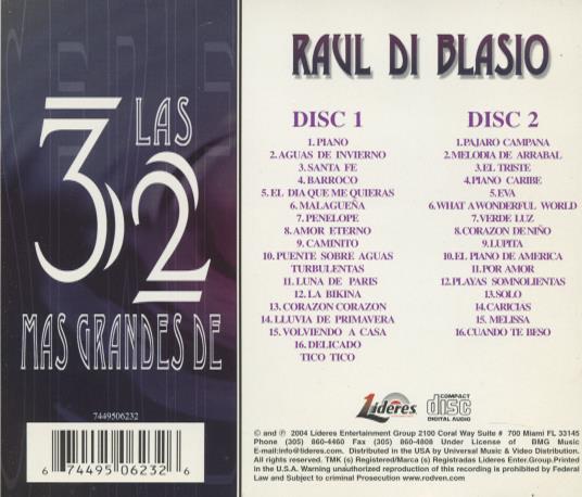 Raul Di Blasio: Las 32 Mas Grandes De 2-Disc MUSIC AUDIO CD latin piano! 2004