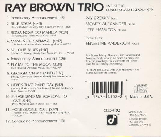 Ray Brown Trio: Live At The Concord Jazz Festival 1979 MUSIC AUDIO CD bassist!