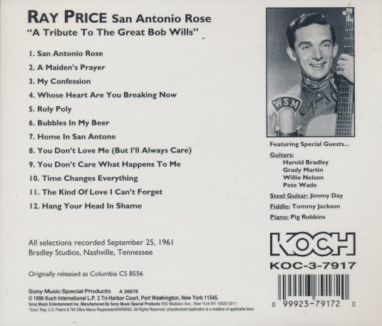 Ray Price: San Antonio Rose MUSIC AUDIO CD country honky-tonk western swing 1996