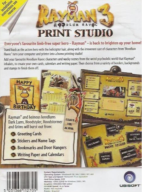 Rayman 3 Print Studio PC CD design video game scenes greeting cards calendars!