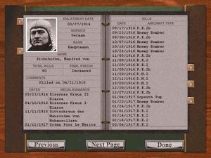 More than 40 WWI vintage aircraft are modeled in the game, including 22 for simulation flying (6 French, 7 German, and 9 British). When playing campaign mode, planes become available for missions in accordance with historical timelines. Roughly half of the instruction manual is devoted to a historical overview of the war including flight tactics, maneuvers, references, and formations employed by the various air forces. Each of the 22 flyable aircraft is shown independently accompanied by a short historic reference in terms of usage, effectiveness, and desirability.