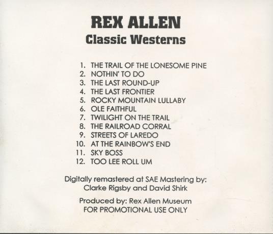 Rex Allen: Classic Westerns PROMO MUSIC AUDIO CD country western guitar songs!