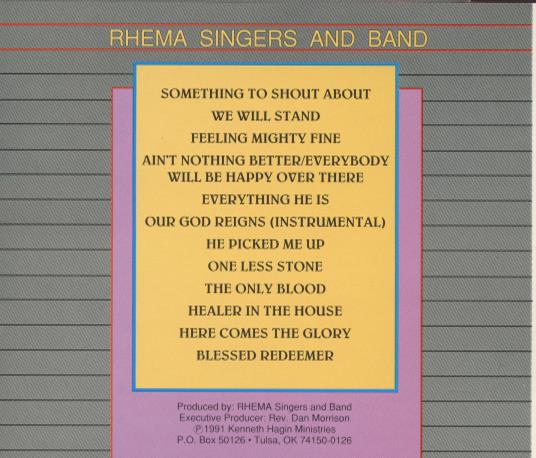 Rhema Singers and Band perform uplifting contemporary gospel music, delivering powerful spiritual messages through vibrant vocals and dynamic arrangements. Executive Producer: Rev. Dan Morrison Kenneth Hagin Ministries Tulsa, OK 74150-0126