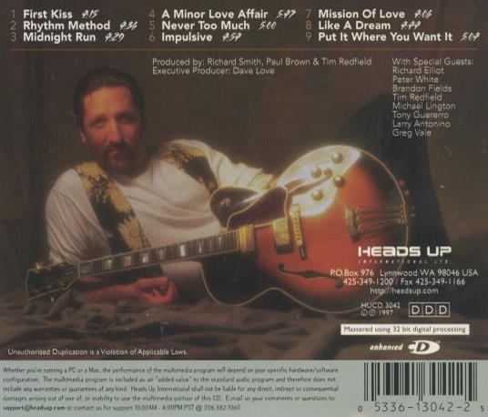 Produced by Richard Smith, Paul Brown and Tim Redfield. Executive Producer: Dave Love. With special guests including Richard Elliot, Peter White, Brandon Fields, Michael Lington, Tony Guerrero, Larry Antonino and Greg Vail. Mastered using 32 bit digital processing.