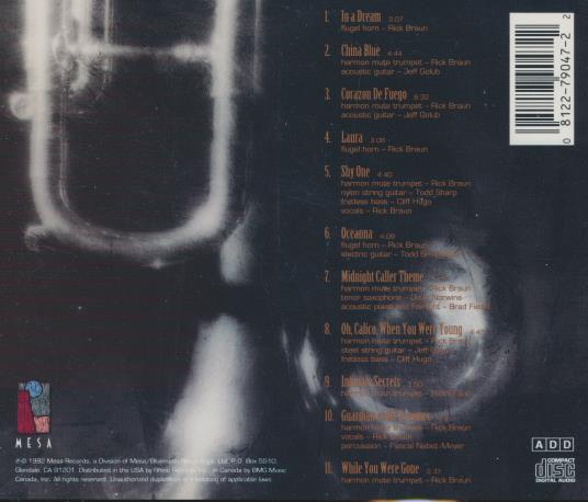 Rick Braun: Intimate Secrets MUSIC AUDIO CD smooth jazz instrumentals 1992 Mesa