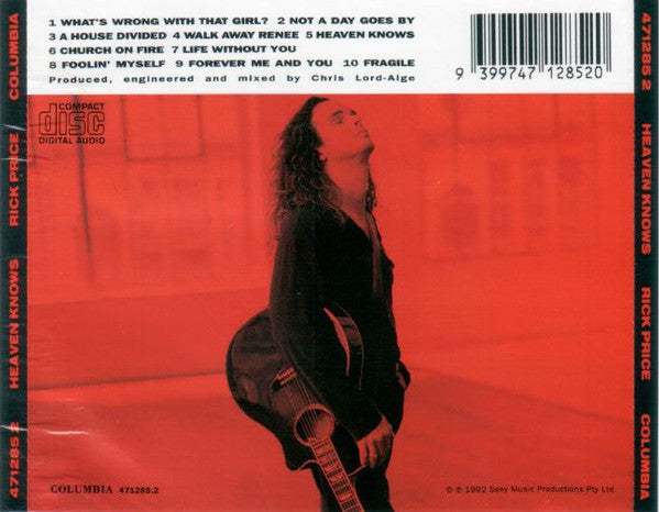 Rick Price: Heaven Knows MUSIC AUDIO CD acoustic soft rock songs 1992 Australia