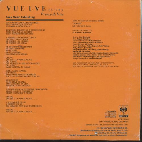 Ricky Martin: Vuelve PROMO MUSIC AUDIO CD latin pop spanish single! 1998 Sony