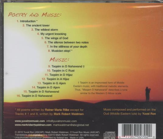 Yuval Ron and Mark Waldman bring a unique blend of Middle Eastern music elements in their compositions, creating a mesmerizing experience for listeners. All poems written by Rainer Maria Rilke except for Tracks #1 and 8, written by Mark Robert Waldman. Music composed and performed on the Oud by Yuval Ron.