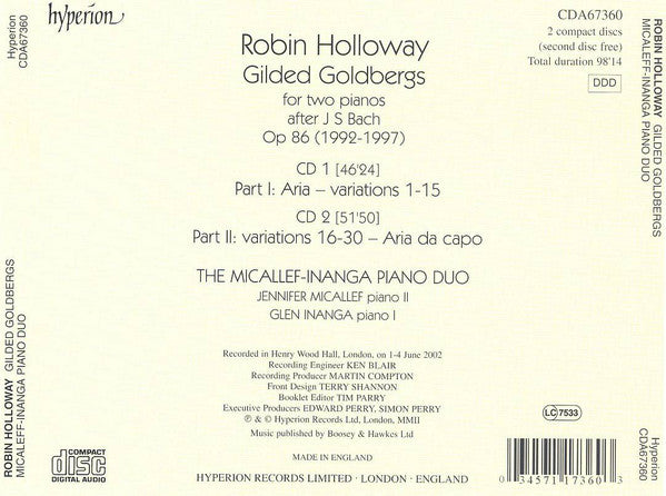 Robin Holloway: Gilded Goldbergs 2-Disc Set MUSIC AUDIO CD piano duo 2002 SEALED