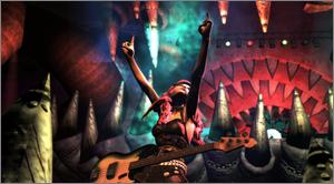 Fans of the developer's previous hits will feel right at home with Rock Band, as the underlying engine incorporates many of the same ideas. To "play" the sound with your selected peripheral, you must hit the right color-coordinated notes in time to the music. The singing aspect is identical to the one used in Karaoke Revolution, where your voice's pitch and phrasing is scored on how close you croon to the selected track.