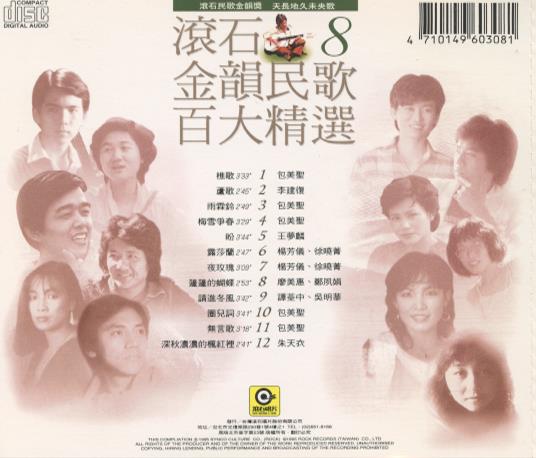 This compilation album features classic Mandarin folk songs brought together by Rock Records. It reflects an era of nostalgic and melodious ballads popular in Taiwan and greater Chinese-speaking communities during the late 20th century. This album is the eighth collection in the series showcasing the 100 best selections of classic folk melodies. It includes iconic tracks by famous artists such as 包美聖, 李建復, and 朱天文.