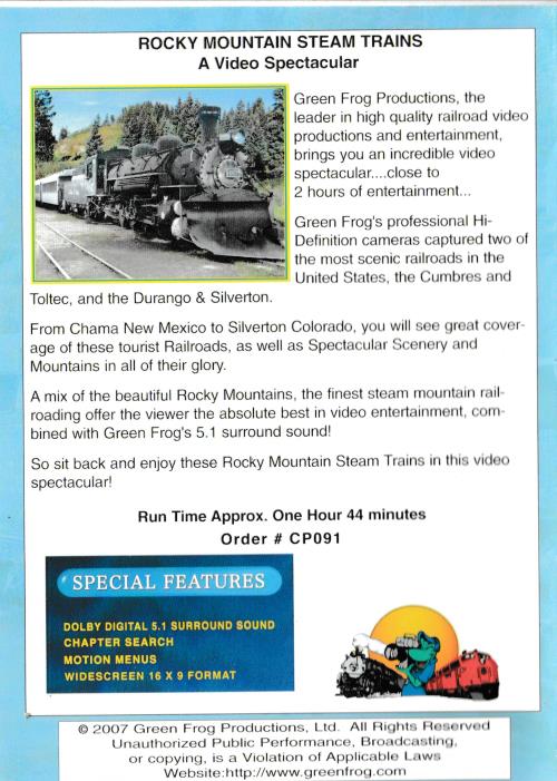 A mix of the beautiful Rocky Mountains, the finest steam mountain railroading offer the viewer the absolute best in video entertainment, combined with 5.1 surround sound!