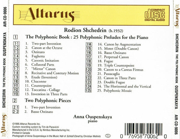 Родион Щедрин - Anna Ouspenskaya: The Polyphonic Book: 25 Polyphonic Preludes / Two Polyphonic Pieces