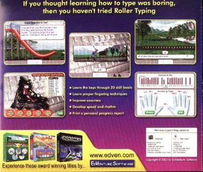 Speedblade down roadways, do a 720 in a half pipe, or dodge obstacles as quickly as you can, all while learning and practicing your typing skills. Filled with five 3-D, animated inline skating events and 20 levels of letters, numbers, and punctuation symbols, students master their typing skills en route to qualifying for Roller Typing's Star Row or Z-Hall of Fame. Throughout, Roller Typing teaches proper fingering techniques, improves accuracy, and develops speed in both untimed and timed trials. Perfect for kids and adults.