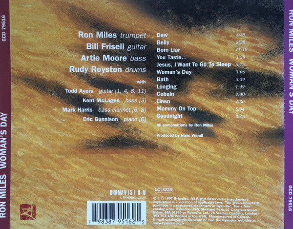 Ron Miles: Woman's Day MUSIC AUDIO CD trumpet jazz trumpeter! 1997 Gramavision