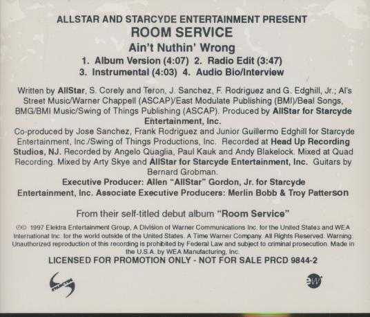 ROOM SERVICE: AIN'T NUTHIN' WRONG 4-TRACK PROMO W/ BACK ARTWORK