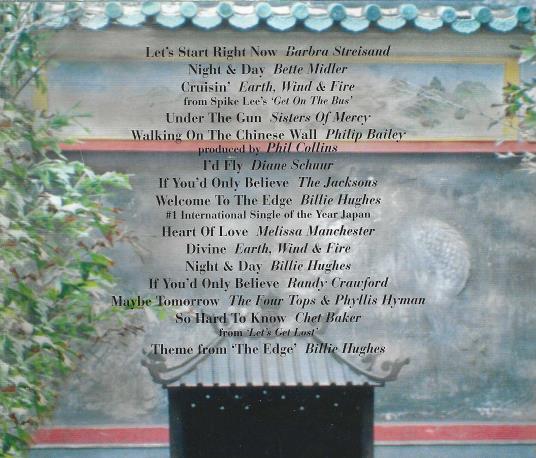 1 Let's Start Right Now Streisand, Barbra (4:59) 2 Night & Day Midler, Bette (5:31) 3 Cruisin (From Get on the Bus) Earth, Wind & Fire (5:44) 4 Under the Gun Sisters Of Mercy (5:44) 5 Walking on the Chinese Wall Bailey, Philip (5:10) 6 I'd Fly Schuur, Diane (5:05) 7 If You'd Only Believe Jacksons (6:16) 8 Welcome to the Edge Hughes, Billie (4:32) 9 Heart of Love Manchester, Melissa (4:26) 10 Divine Earth, Wind & Fire (4:34) 11 Maybe Tomorrow (5:25) 12 So Hard to Know Baker, Chet (5:20) 13 Theme from "The Edge" Hughes, Billie (4:08)