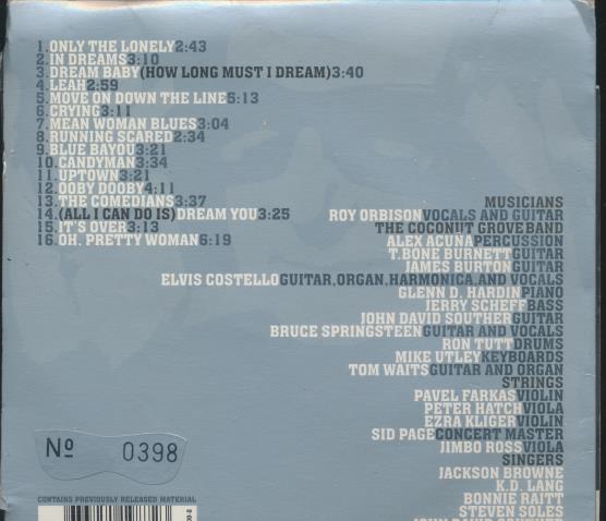 Musicians: Roy Orbison - vocals and guitar; The Coconut Grove Band; Alex Acuña - percussion; T-Bone Burnett - guitar; James Burton - guitar; Elvis Costello - guitar, organ, harmonica and vocals; Glenn D. Hardin - piano; Jerry Scheff - bass; John David Souther - guitar; Bruce Springsteen - guitar and vocals; Ron Tutt - drums; Mike Utley - keyboards; Tom Waits - guitar and organ. Strings: Pavel Farkas - violin; Peter Hatch - viola; Ezra Kliger - violin; Sid Page - concert master; Jimbo Ross - viola. Singers: Jackson Browne, K.D. Lang, Bonnie Raitt, Steven Soles.