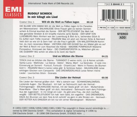 Rudolf Schock: In Mir Klingt Ein Lied / Portrait In Song 3-Disc MUSIC AUDIO CD