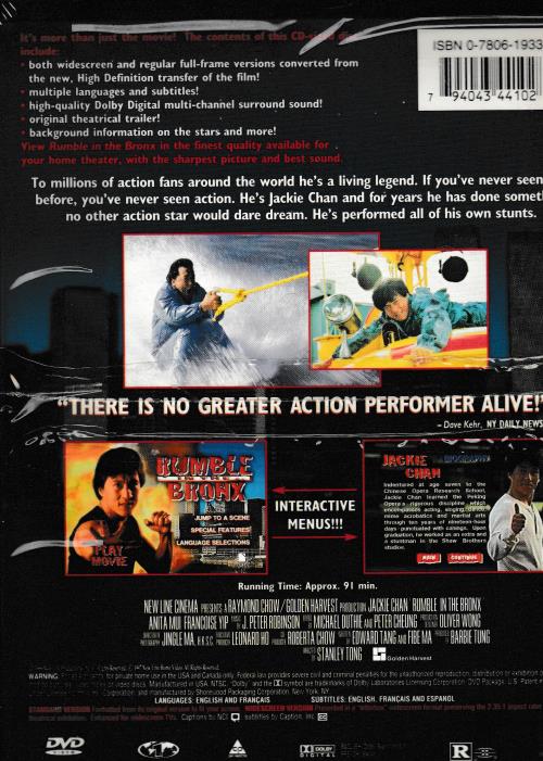 Rumble In The Bronx DVD MOVIE VIDEO Jackie Chan Hong Kong film martial arts gang