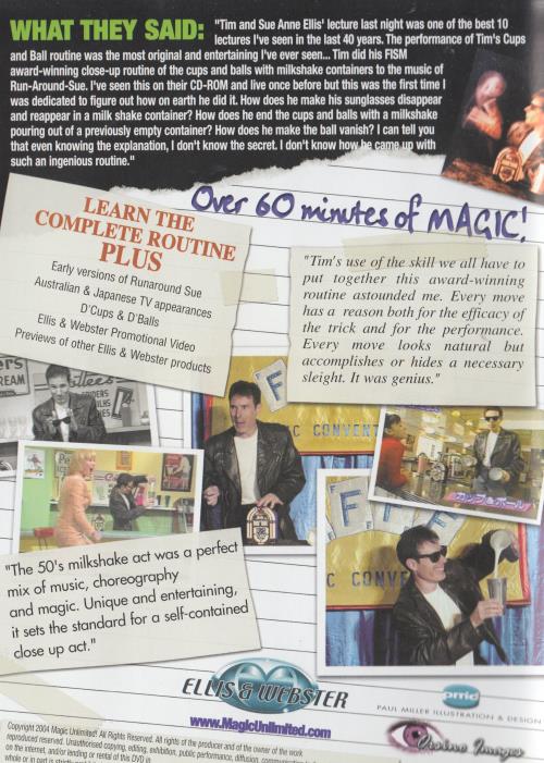 Experience the award-winning cups and ball routine performed by Tim Ellis. This limited edition instructional DVD teaches Tim's complete Runaround Sue routine, showing the moves, patter, and performance that won top honors at FISM.