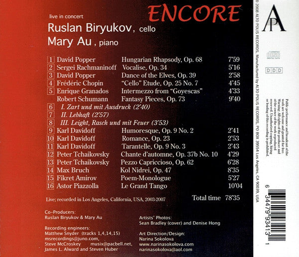 Ruslan Biryukov, Mary Au: Encore: Live In Concert MUSIC AUDIO CD classical album