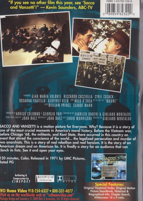 Sacco & Vanzetti DVD VIDEO MOVIE 1971 true story American history Joan Baez film