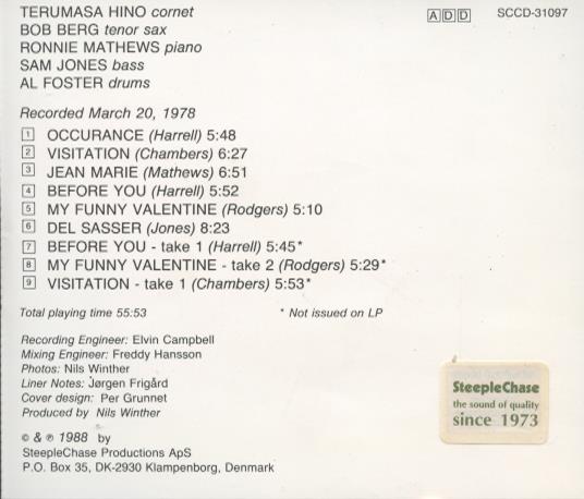 Recorded March 20, 1978, this album showcases a selection of tracks composed by members of the group and other renowned composers. It features additional takes not issued on the LP and notes contributions from recording and mixing engineers Elvin Campbell and Freddy Hansson. The liner notes by Jørgen Frigård and the cover design by Per Grunnet complete the thoughtful presentation. SteepleChase has been dedicated to quality jazz recordings since 1973.