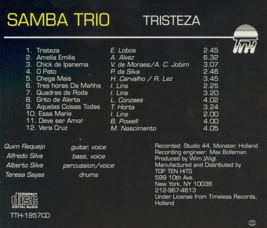 Samba Trio: Tristeza MUSIC AUDIO CD latin quartet bossa jazz! 2016 Solid Records