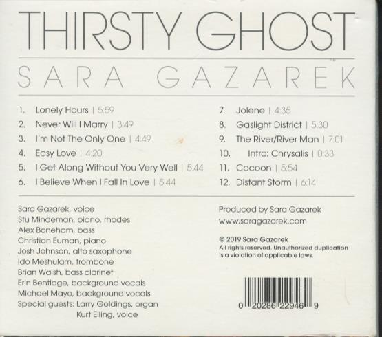 Sara Gazarek is an American jazz vocalist known for her warm tone and thoughtful interpretations. Thirsty Ghost blends modern jazz arrangements with intimate vocal storytelling and features both originals and imaginative covers. The album balances piano-driven balladry and lush ensemble textures, highlighting Gazarek's nuanced phrasing. Guest artists and rich instrumentation give the record a contemporary, cinematic jazz feel.