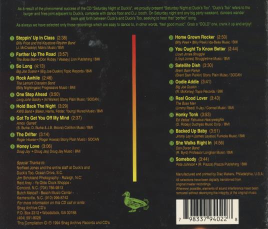 Saturday Night At Duck's Too! MUSIC AUDIO CD 18 more shaggin' dance archives '94