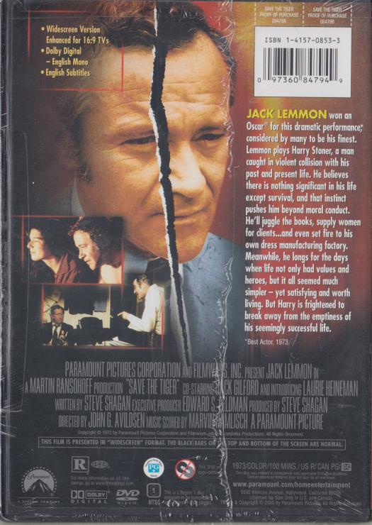 Save The Tiger DVD VIDEO MOVIE Jack Lemmon drama businessman struggle 1973 NEW