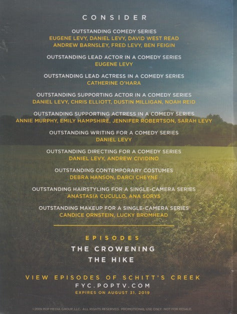 Schitts Creek FYC 2 Episodes DVD VIDEO TV SHOW comedy Crowening The Hike series