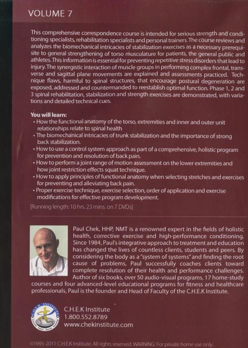 Volume 7: Advanced Program Design - Home Study Course is an in-depth correspondence program designed for dedicated strength and conditioning professionals, rehabilitation experts, and personal trainers. The course thoroughly examines and discusses the biomechanical details of stabilization exercises, which are essential for the overall strengthening of torso muscles in patients, the wider community, and athletes. This knowledge is crucial for the prevention of repetitive stress injuries.