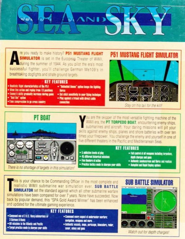 Sea & Sky MAC CD collection of combat simulation games P51 Mustang Flight, Sub