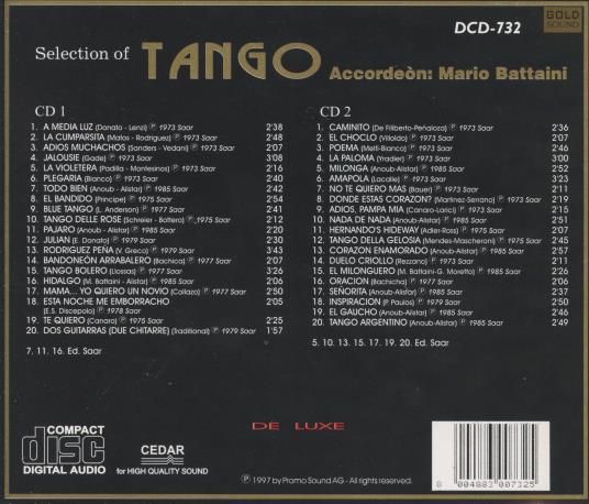 Selection Of Tango: Accordeon: Mario Battaini De Luxe 2-Disc Set MUSIC AUDIO CD