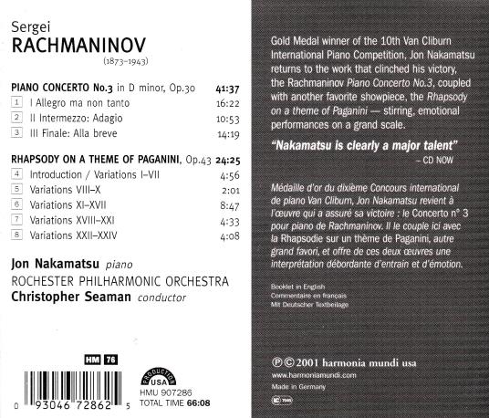 Rachmaninov - Jon Nakamatsu, Rochester Philharmonic Orchestra, Christopher Seaman: Piano Concerto No.3 / Rhapsody On A Theme Of Paganini