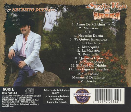 Sergio Vega: El Shaka: Necesito Duena MUSIC AUDIO CD latin mexico Norte! 2006