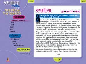 Seventeen Style Studio Deluxe also has two smaller features: an advice column and personality quizzes. The advice focuses primarily on issues of fashion and appearance, with extensive essays devoted to the minute details of make-up application and skin care. The personality quizzes are multiple-choice offerings designed to help users pick out a perfect boyfriend or assess the "weirdness" of their families.
