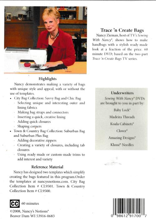 Sewing With Nancy: Trace 'n Create Bags DVD VIDEO Zieman demonstration templates